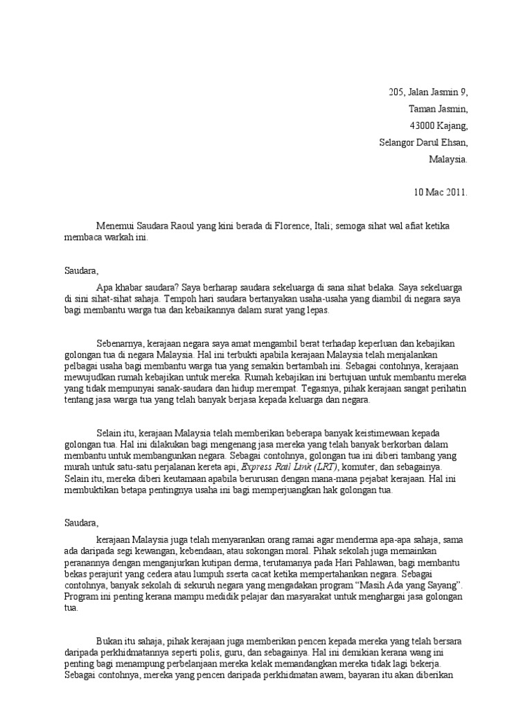 Contoh Karangan Surat Kiriman Tidak Rasmi Tingkatan 5 Letter 7saudara Com